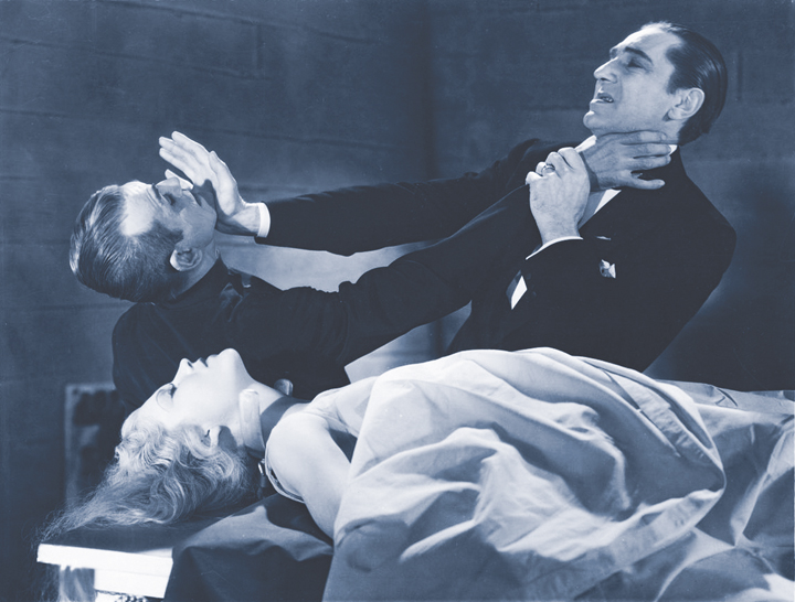 Oh, I forgot to mention Bela Lugosi slices off Boris Karloff’s face.