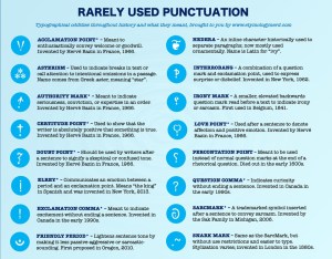 (The Interrobang is a combination of both the exclamation point and a question mark, used thusly: “What are you doing[insert interrobang. Unfortunately, the interrobang isn’t standard in font sets and can’t easily be used in typing.] You’ve just released the Kraken. ” )