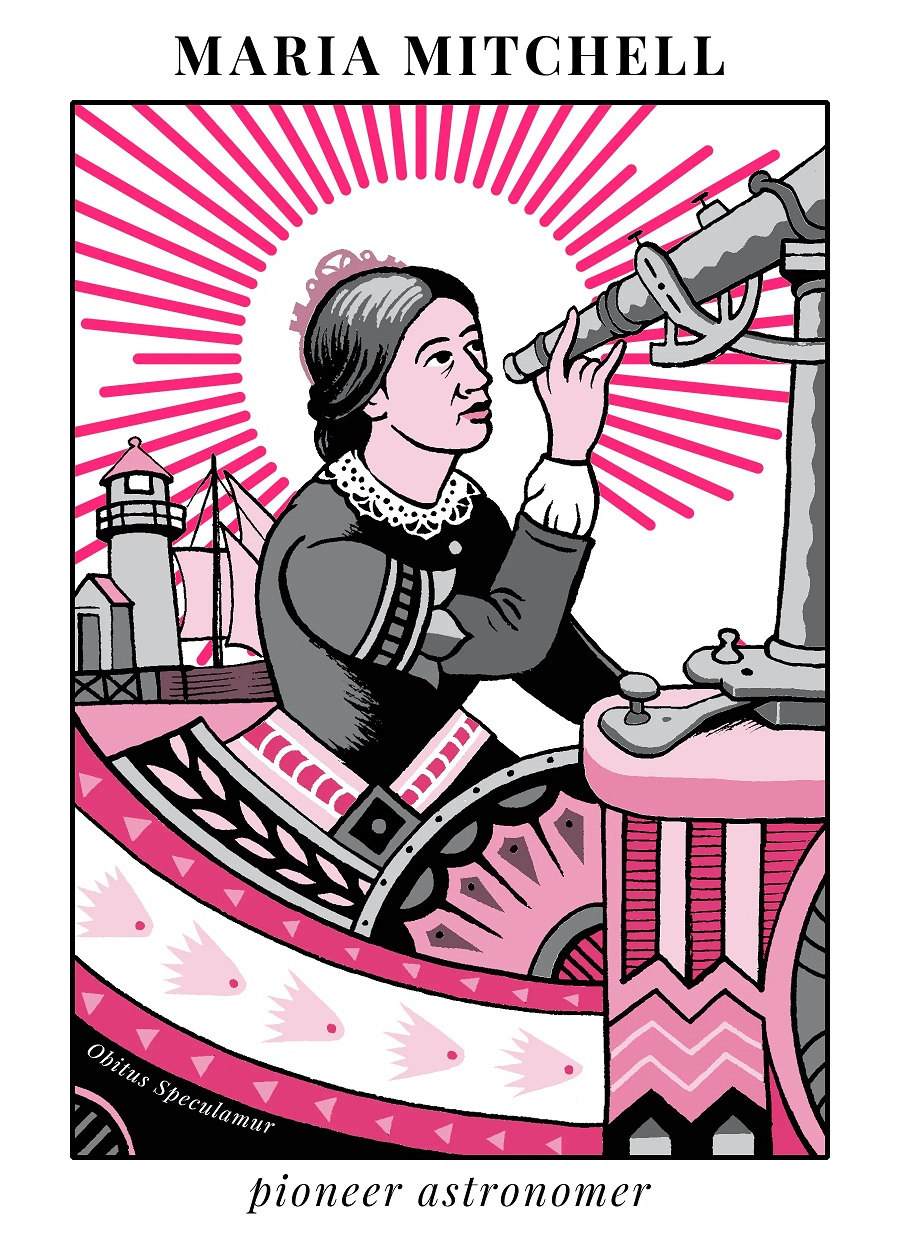 Maria Mitchell, a distant relative of Benjamin Franklin, using a telescope, discovered “Miss Mitchell’s Comet” (Comet 1847 VI, modern designation is C/1847 T1) on this date. Some years previously, King Frederick VI of Denmark had established gold medal prizes to each discoverer of a “telescopic comet” (too faint to be seen with the naked eye). The prize was to be awarded to the “first discoverer” of each such comet (note that comets are often independently discovered by more than one person). She duly won one of these prizes, and this gave her worldwide fame, since the only previous woman to discover a comet had been Caroline Herschel. She was also asked by her Nantucket neighbors to stop peeking into their bedrooms at night.
