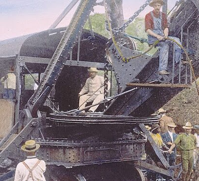 The chief engineer had the incredibly difficult task of accompanying Roosevelt everywhere he went. He said, “I have blisters on both feet and am worn out – Scaling a hill with Roosevelt is like taking a fort by storm.” They took a train to the construction site, but when Roosevelt saw the first 95-ton steam shovel, he ordered that the train be stopped so that he could hike through the mud to see the steam shovel up close. It was a new invention at the time, and Roosevelt spent a half an hour asking about its operation. He then took a turn at the controls.