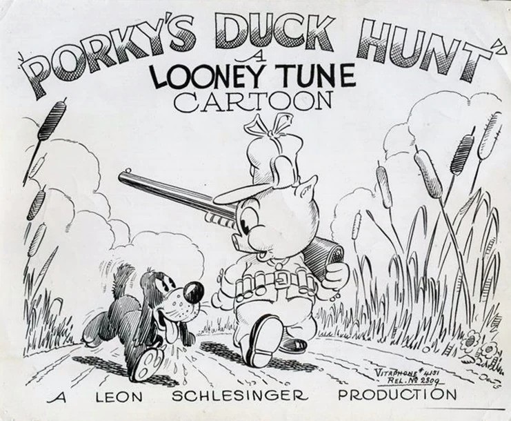 The cartoon had an almost identical theme to a 1937 cartoon, Porky’s Duck Hunt, directed by Tex Avery and introducing Daffy Duck. Following the general plot of this earlier film, the short cast Porky Pig as a hunter against an equally nutty prey more interested in driving his hunter insane than running away. But instead of a black duck, his current prey was a tiny, white rabbit. Bugs Bunny introduces himself with the expression “Jiggers, fellers,” and Mel Blanc gave the rabbit a voice and laugh that he would later use to voice Woody Woodpecker. In this cartoon, he also quoted Groucho Marx for the first time (from the movie Duck Soup): “Of course, you know, this means war!“