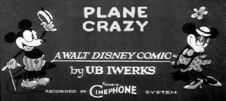 Plane Crazy was the first animated cartoon to feature Mickey Mouse as well as Minnie Mouse (Mickey’s girlfriend). The short was co-directed by Walt Disney and Ub Iwerks.