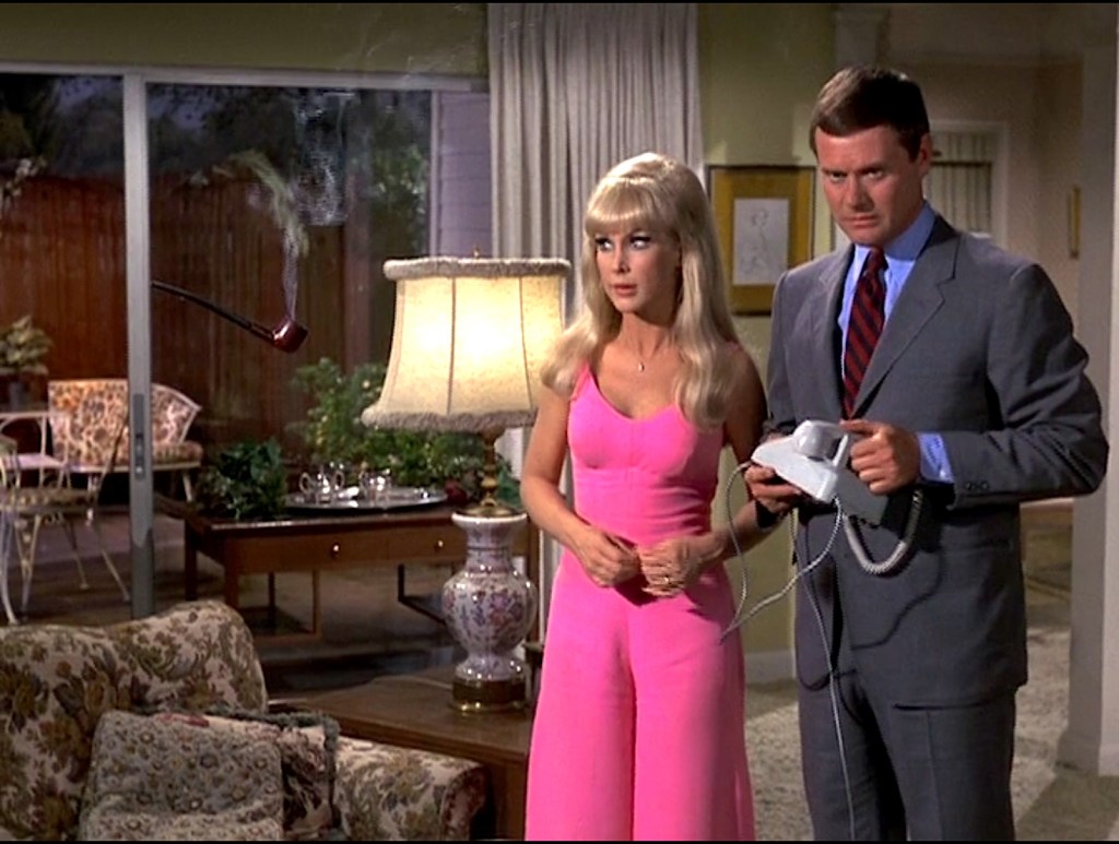 During several interviews, Sidney Sheldon admitted that he used the comedy movie, The Brass Bottle, a film about a man, portrayed by Tony Randall, that unleashed a male genie, that was portrayed by Burl Ives, but causes more problems for its master than it solves – as a working model for the show. In the movie, Tony Randall’s girlfriend was played by Barbara Eden.