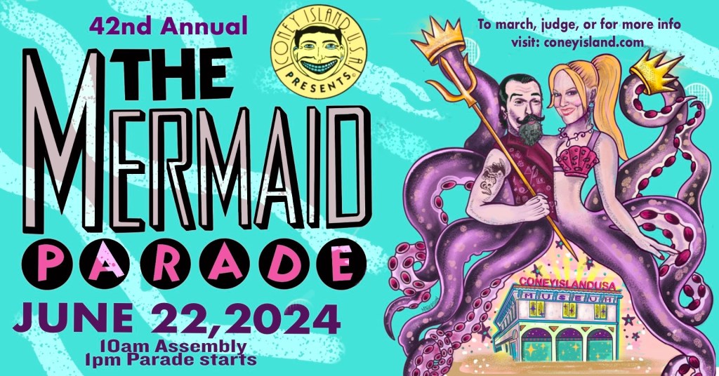 Today is the 42nd annual Mermaid Parade on Coney Island, self described as the ‘largest art parade in the nation.’ The grand-marshals this year are, King Neptune – Joe Coleman, and Queen Mermaid – Whitney Ward.