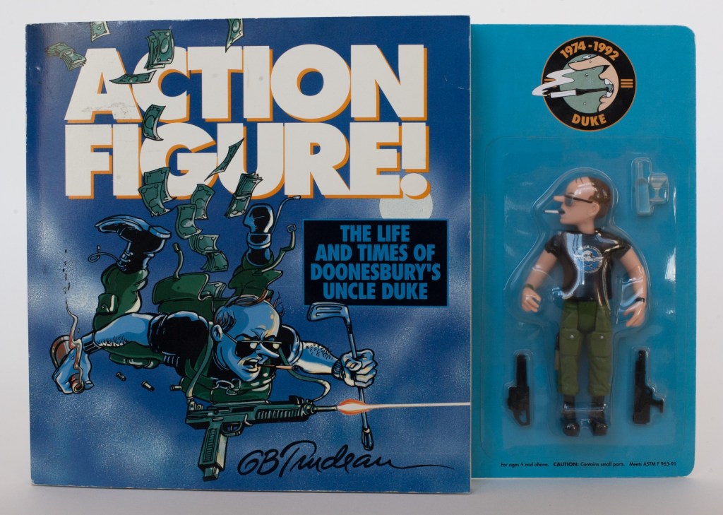 (Uncle Duke first appeared in Doonesbury was on July 8, 1974.) Several movies have been made about Dr. Thompson’s life and work and psychotic episodes. He is perhaps the only American journalist to have been played on-screen by both –