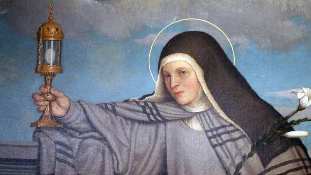 It’s the Feast of St. Clare today. St. Clare of Assisi (or Clair or Claire – spelling wasn’t a major issue back then. Living past 29 years old was considered miraculous) didn’t want to marry the rich young man her parents picked out for her and ran away from home to become the biggest Francis of Assisi groupie in the world. St Clare was too ill to attend Mass, she had reportedly been able to see and hear it on the wall of her room (she had phenomenal reception for the Middle Ages.) This led to her becoming the patron saint of television.