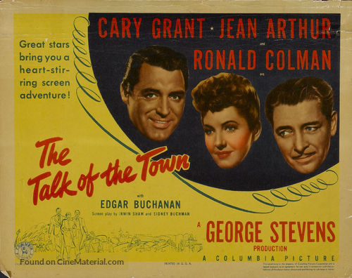 An almost forgotten comedy from Columbia Pictures, Talk of The Town, directed by George Stevens starring Cary Grant, Jean Arthur and Ronald Colman, opened on this date.