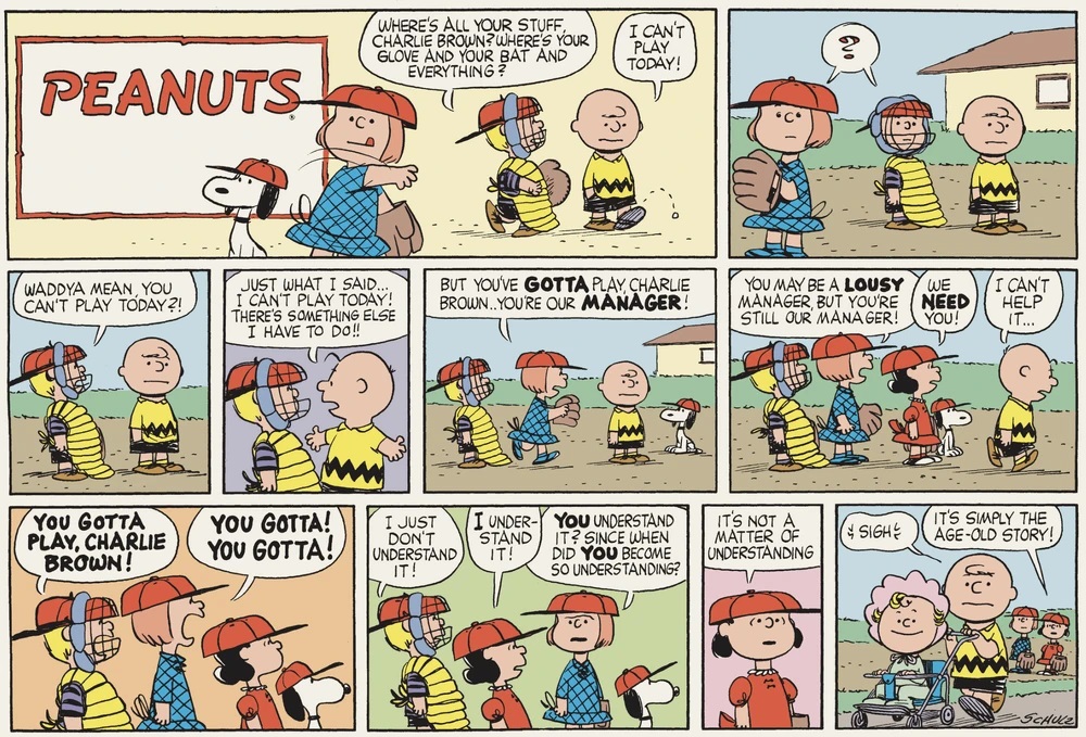 Charlie Brown’s sister Sally was born on May 26, 1959, with Charlie Brown receiving a telephone call from the hospital and dashing out of the house yelling that he had a new baby sister.