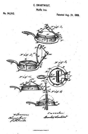 It the anniversary of Cornelius Swarthout (of Troy, New York) receiving the first U.S. patent for a stovetop Waffle Iron (U.S. patent No. 94,043).