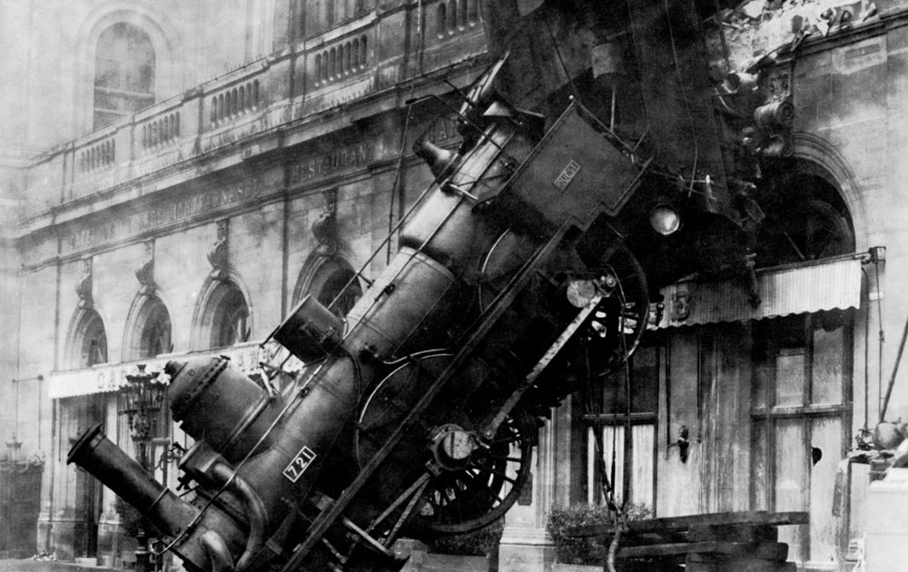The Gare Montparnasse, one of the six large terminus train stations of Paris, became famous for a derailment on October 22, 1895 of the Granville-Paris Express that overran the buffer stop. The engine careened across almost 100 ft off the station concourse, crashed through a two foot thick wall, shot across a terrace and sailed out of the station, plummeting onto the Place de Rennes more than 30 feet below, where it stood on its nose.