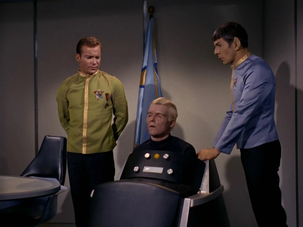 This episode incorporate most of the unseen (at the time) pilot episode of Star Trek, The Cage, featuring Jeffrey Hunter, as Christopher Pike, captain of the USS Enterprise.