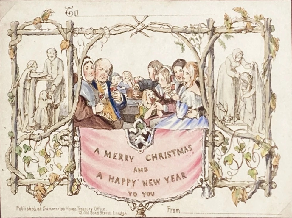Like most of us, Henry Cole, an Englishman, was too busy to write personal greetings for all of his Christmas greetings in 1843. Cole hired artist John Calcott Horsley to design a ready-to-be-sent card.