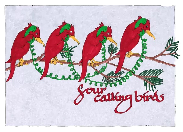 It’s the Fourth day of Christmas and you’ve just received four calling bird, sometimes know as colly birds or collie birds (which are actually blackbirds).