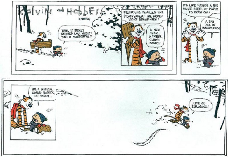 Calvin and Hobbes debuted in 1985 and featured the adventures of Calvin, a hyperactive, overly imaginative, bratty six-year-old, and his best friend, the stuffed tiger Hobbes (who is also an actual tiger.)