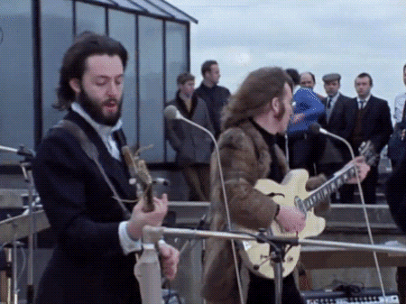 The performance, filmed for the documentary Let It Be, was eventually halted when police arrived after neighbors complained about the racket. (Once again, I strongly encourage you to seek out the Peter Jackson documentary, Get Back.)