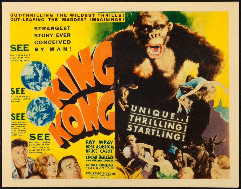 Kong escapes and climbs the Empire State Building (the World Trade Center in the 1976 remake) where he is shot and killed by aircraft. Nevertheless, “it was beauty who killed the beast“, as he only climbed the building in the first place in an attempt to protect the lead female character Ann Darrow.