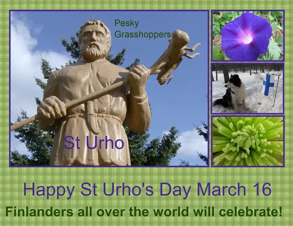 Today is the celebration of St. Urho’s Day, Patron saint of Finnish vineyard workers. Attributed to him is the miracle of banishing grasshoppers from Finland which he accomplished with a few choice Finnish phrases, thereby saving the season’s grape crop.