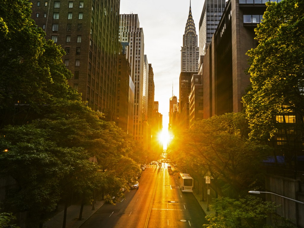 Once again, the sun will be perfectly lined up with the east-west streets of New York.