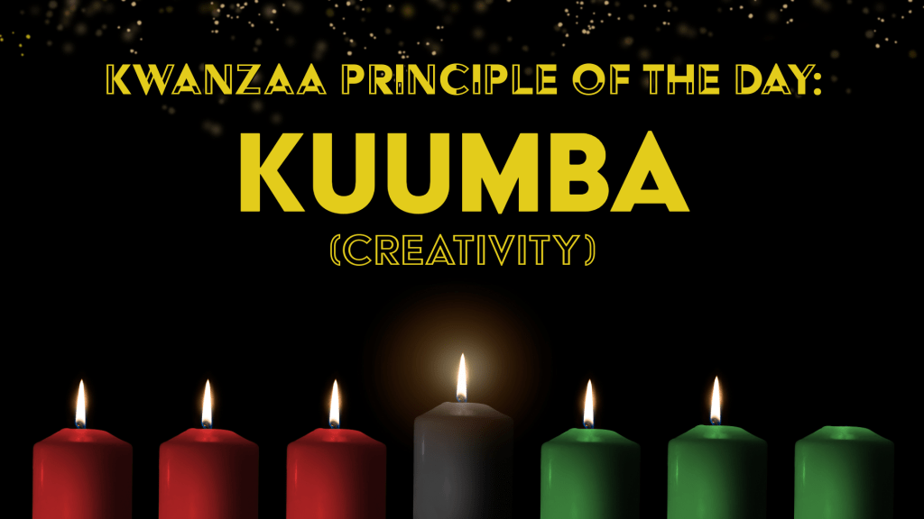 Kuumba (koo-OOM-bah) signifies Creativity: To do always as much as one can, in the way one can, in order to leave their community more beautiful and beneficial than they inherited it.
