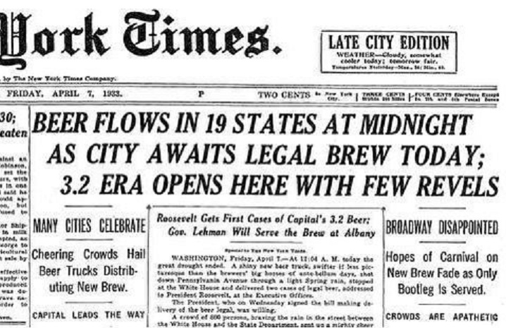 Today is also National Beer Day. While it is not actual a national holiday, in March of 1933, President Roosevelt signed the Cullen–Harrison Act allowing the sale of beer once again with the proviso, the beer remain no more than 3.2% alcohol by weight, the first legal alcohol allowed since Prohibition began in 1919.