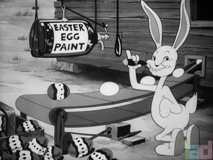 Eddie Cackler is a parody of Eddie Cantor. The “boy wanted” sign and the five hatching eggs were references to all five of his children being girls, which was a running joke on his radio show. Then along comes a chicken resembling Bing Crosby, whose (then) four children were all boys. (Crosby later had a daughter and two more sons from his second marriage, long after this cartoon was made.)