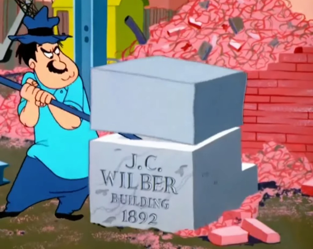 A mid-1950s construction worker involved in the demolition of the J. C. Wilber Building finds a box inside a cornerstone.